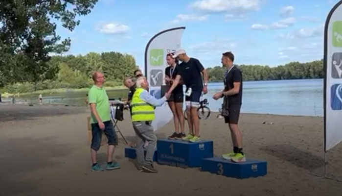 Voller Erfolg für Till. Er wurde deutlicher Gesamtsieger auf der Volksdistanz. Herzlichen Glückwunsch! Auch Frank und Michael kamen gut ins Ziel. Nicht soviel Glück hatte Jörg. Nach der ersten Wechselzone musste er das Rennen abbrechen. Plattfuß 🤷🏻♂️